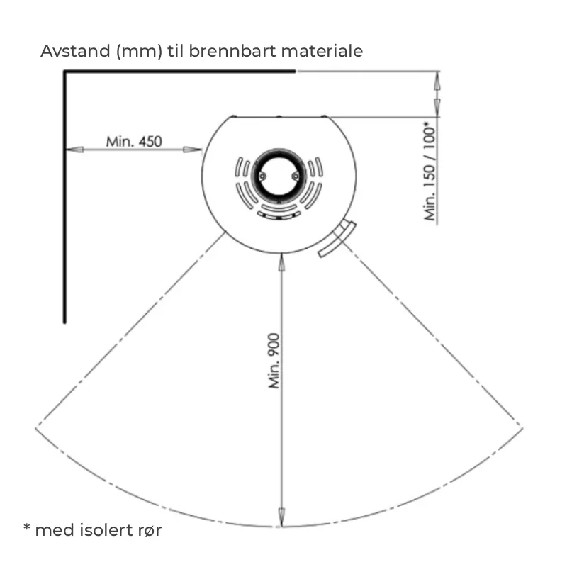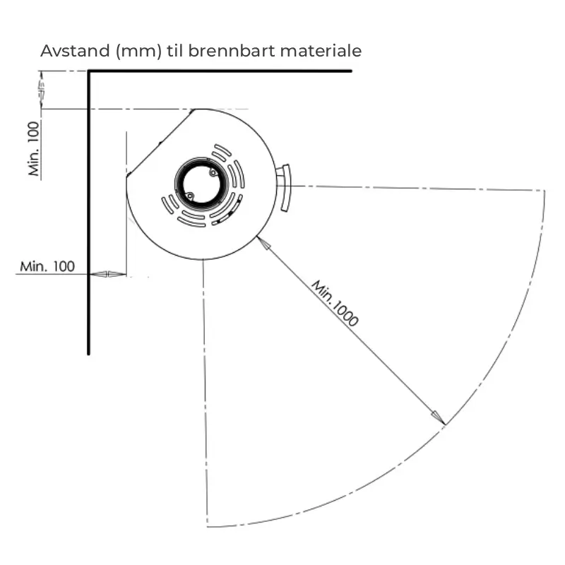 - Avstand til brennbart materiale: