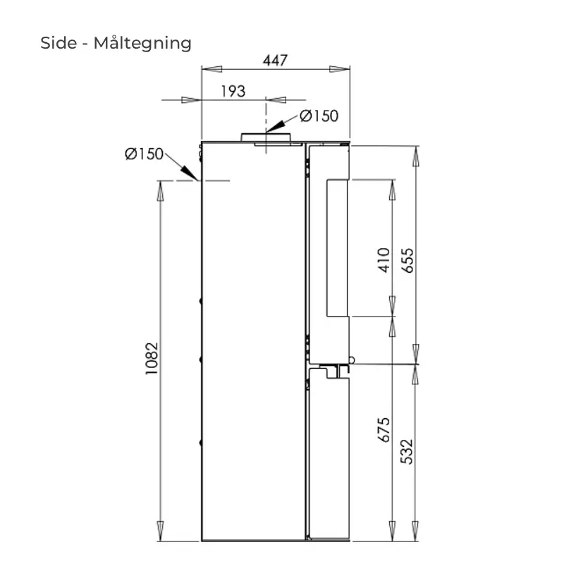 - Røykrør: Ø150 mm (topp- eller bakkanttilkobling)
