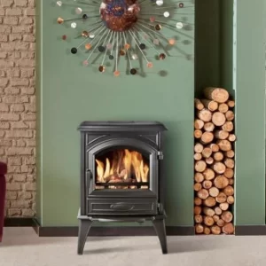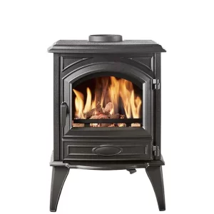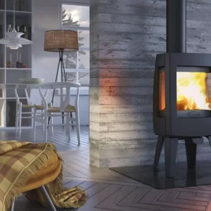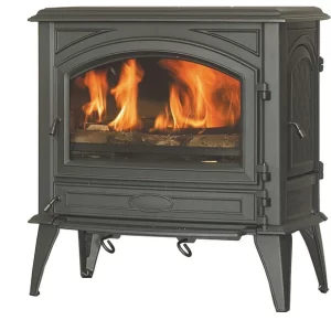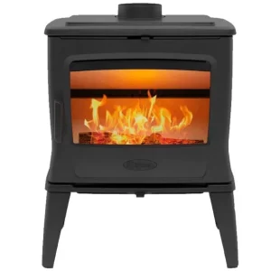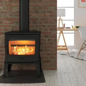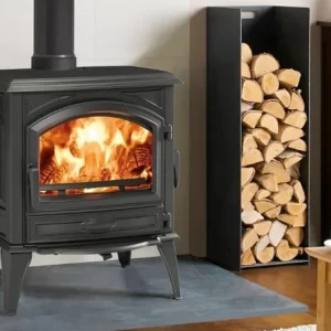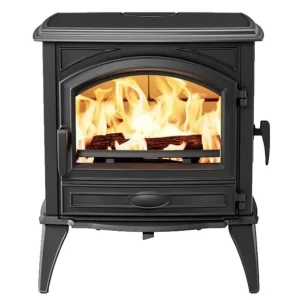 Vedovnen har glassdør som gir godt innsyn til peisbålet. Kan leveres med 1 eller 2 kokeplater som ekstrautstyr. Med etasjestykke som tilbehør vil varmeeffekten øke med inntil 1000 W. Etasjeovnen har betegnelsen 45 CBS og består av Dovre 40 CBS med etasjestykke.