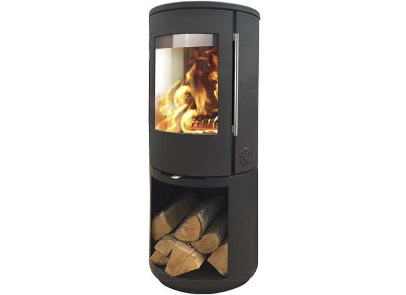 Morsø 7393 har en ekstra høy sokkel med oppbevaringsmulighet for ved, som gir vedovnen et eksklusivt utseende. Vedrommet gir fritt innsyn til den rustikke vedstablen som skaper en god stemning.