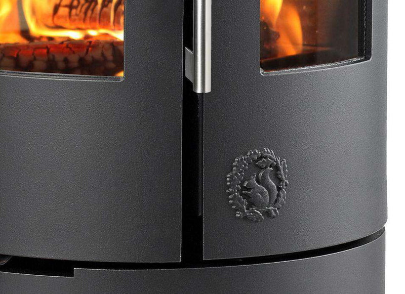 Morsø 7493 har en ekstra høy sokkel med oppbevaringsmulighet for ved, som gir vedovnen et eksklusivt utseende. Vedrommet gir fritt innsyn til den rustikke vedstablen som skaper en god stemning.