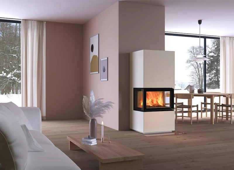 Davos U har doble glass på begge sider, og sideglassene er belagt med et unikt, reflekterende materiale. Denne teknologien gir optimal forbrenning, en innsats det er enklere å bruke, og den holder glassene rene. Peisen er flott umalt, men kan også males i ønsket farge.