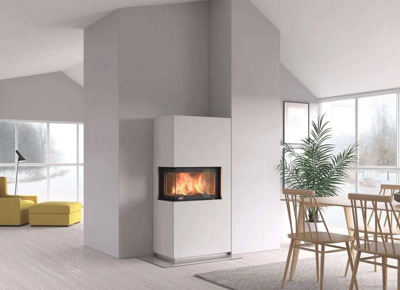 Nordpeis Monaco A High er en flott, stor peis med vinkelinnsats og skjulte ventiler i sokkelen som gir et rent uttrykk. Peisen har meget godt innsyn til flammene. Monaco A High har innsatsen plassert høyt i omramningen og kan kombineres med vednisje.