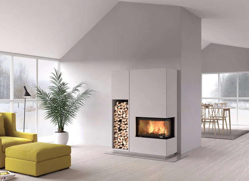 Nordpeis Monaco A er en flott, stor peis med vinkelinnsats og skjulte ventiler i sokkelen som gir et rent uttrykk. Peisen har meget godt innsyn til flammene. Monaco A har innsatsen plassert lavt i omramningen og kan kombineres med vednisje.