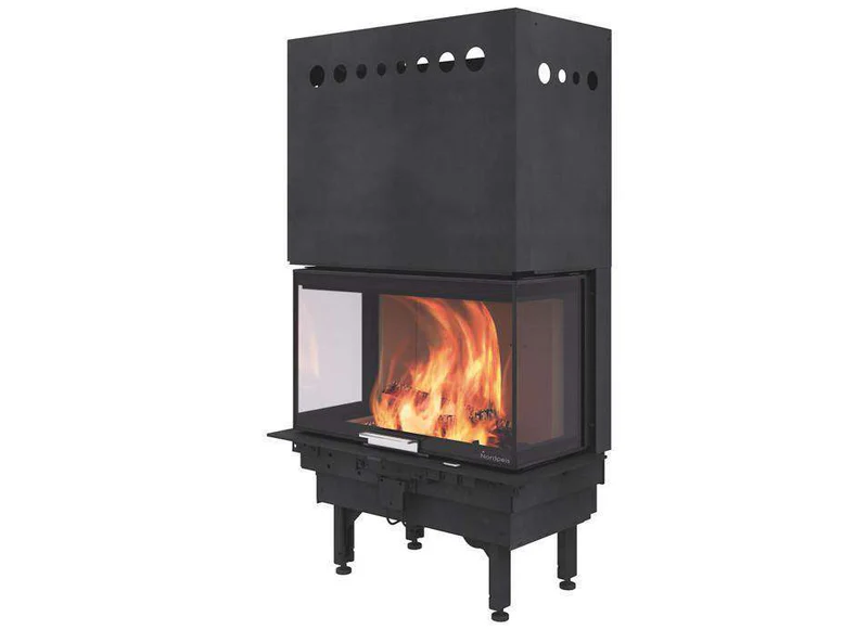 Nordpeis Q-34UL er en stor innsats med en ekslusiv heve-/senkedør og innsyn til flammene fra tre sider. Våre innsatser har nøye utprøvd forbrenningsteknikk, luftspyling av glasset og et velisolert brennkammer med Thermotte. Q-innsatsene tar vedlengde helt opp til 50 cm, gir mye varme og anbefales for større rom. Alle våre innsatser er rentbrennende for maksimal utnyttelse av veden.