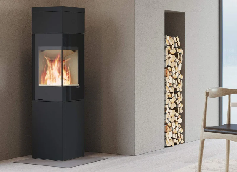 Nordpeis Quadro 3 Exclusive har store, utenpåliggende glass som gjør den ekstra elegant. Quadro 3 Exclusive har som tilvalg ekstra topper for varmelagring eller skjult sidemontering. Vedovnen har mulighet for ekstern luftstilførsel som bør benyttes i velisolerte, tette boliger. Quadro 3 Exclusive har en høy sokkel med dør. Tilpasset gulvplate i klart glass finnes som tilbehør.