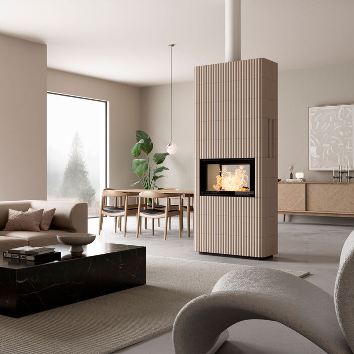 Wave T blir et naturlig midtpunkt i rommet, med en tunnelinnsats som gjør at den kan plasseres midt i rommet og brukes som en dekorativ og stemningsskapende romdeler. Den unike, bølgete overflaten gir peisen et spennende uttrykk som endrer seg med lyset. Mal peisen i fargen som passer til ditt hjem og din stil, og la den bli en lekker del av interiøret. En ekstra stor innsats gir godt innsyn til flammene og har gjennomsyn, slik at du kan se peisbålet uansett hvor i rommet du er. På de høyeste modellene kan du legge til en varmelagrende PowerStone™. Dermed holder du lenger på varmen og øker virkningsgraden betraktelig.