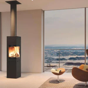 Praktiske funksjoner som selvlukkende dør, integrert askeskuff og godt betjeningshåndtak gjør vedfyringen både trygg og enkel.