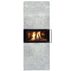 Våre medarbeidere designet Marcello ovnen og er blant våre nyeste modeller. Ovnen har lekre ­detaljer, som glassdøren som går ­nærmest sømløst over i steinen. Den synlige delen er en glassplate som dekker hele fronten. Bak den solide fronten finner man høykvalitets støpejern som sørger for stabilitet i døren og resten av ovnen.
