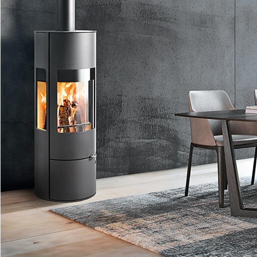 Høy og flott ildsted, med stort brennkammer. Dør under for oppbevaring av fyrstikker og tennbriketter.